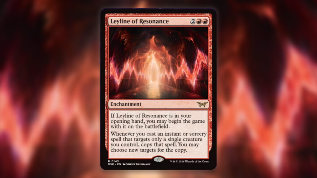 Leyline of Resonance copying instants and sorceries that target your creatures is incredibly scary. Suddenly, cards like Giant Growth give +6/+6 instead of +3/+3 for just one mana. This sort of potential can easily allow for a turn-two death combo in the Standard format. If this weren’t bad enough, thanks to another uncommon coming out in Duskmourn, you can do the entire combo by just using red mana.