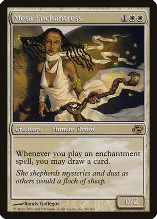 But Light-Paws does have some Aura-focused ways of drawing cards. Sram, Senior Edificer, draws a card whenever you cast an Aura. Kor Spiritdancer does the same thing, but has the added bonus of getting +2/+2 for each Aura attached to it. And then there’s always good ‘ol Mesa Enchantress, a staple of many enchantment decks, which works perfectly in this deck.