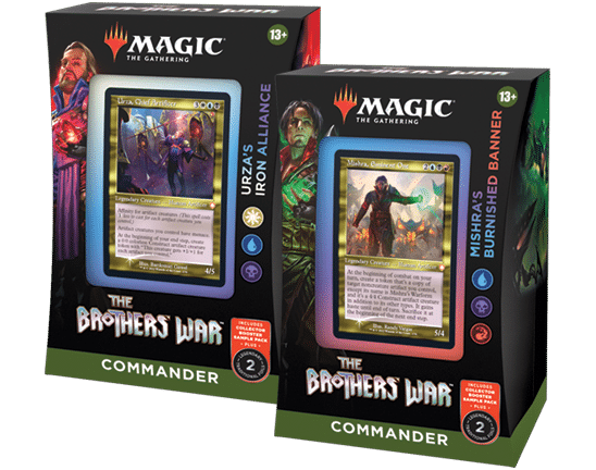 Up next are the new Commander products coming out alongside the release of The Brothers’ War. Between the two decks released, Mishra’s Burnished Banner looks particularly interesting. In our opinion, the best Commander card in the set is coming out as a part of this deck. Additionally, the Commander has caused some significant spikes in the secondary market as a result of infinite turns combos.