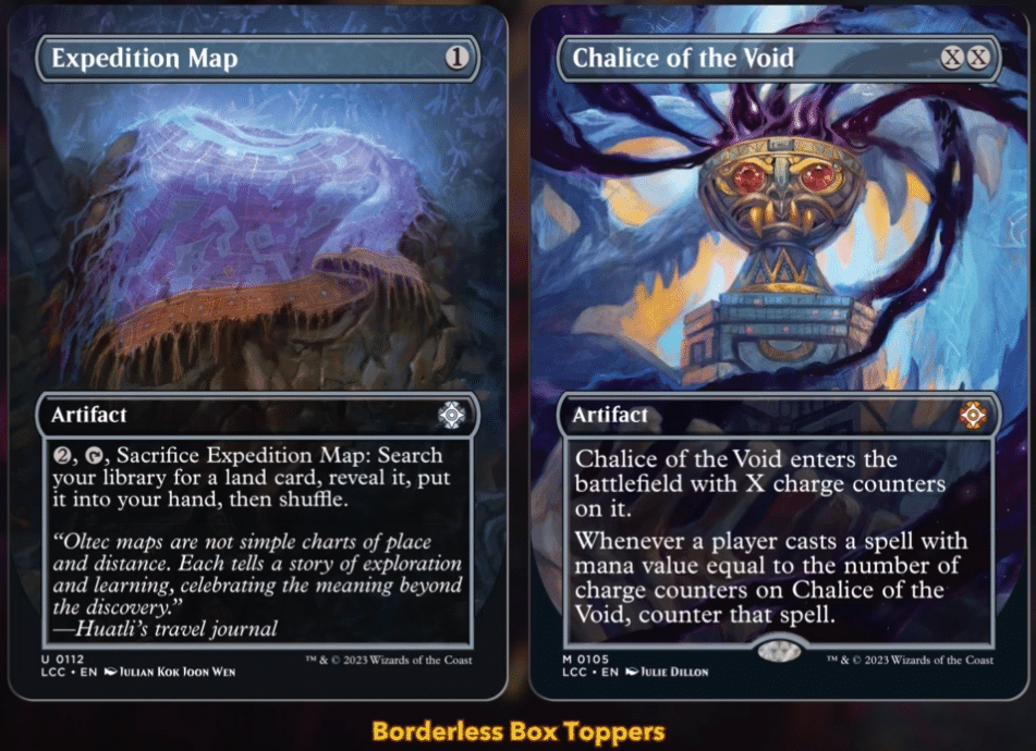 Announced today alongside The Lost Caverns of Ixalan reveal stream are the Treasure Trove box toppers. According to Wizards of the Coast, these Box Toppers consist of 20 powerful artifact cards. You can find these cards in their nonfoil variants in Set and Draft Booster box displays, but you can only find their foil variants in Collector Booster displays. The above two cards were revealed during The Lost Caverns of Ixalan debut stream.