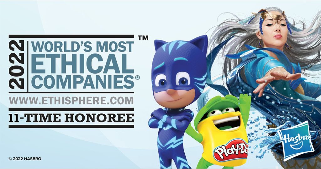 In a statement on the Hasbro website, CEO Chris Cocks says, “As a global company with multi-generational brands that engage and delight consumers, we know we have a responsibility to act as a force for good. This recognition from Ethisphere, for the 11th year running, underscores our continued commitment to operating with ethical, responsible and sustainable business practices, and we are honored to be included.”