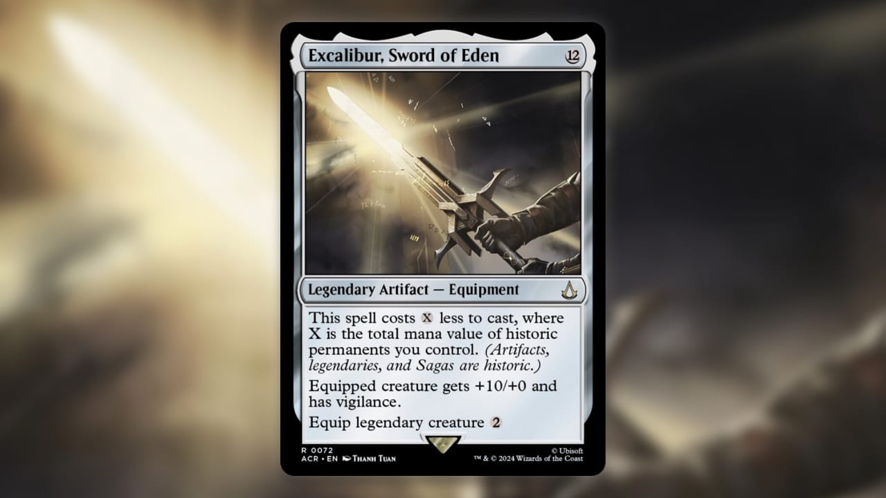 Excalibur, Sword of Eden from the Assassin’s Creed Universes Beyond set can do some absolutely stupid things alongside Captain America. As long as you have a decent amount of Historic permanents in play, Excalibur gets a decent mana value reduction. Getting this into play in a deck focused on equipment shouldn’t be too expensive since equipment are themselves Historic permanents.