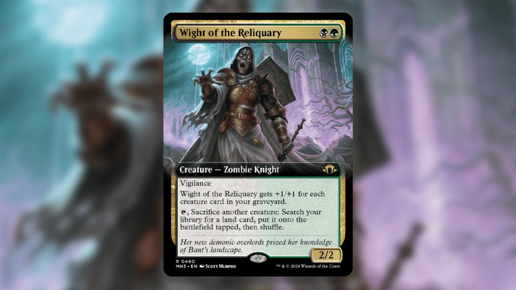 Wight of the Reliquary is yet another spin on an existing powerhouse: Knight of the Reliquary. While that card became stronger with lands in the grave, and allowed for an exchange of lands, Wight of the Reliquary gets stronger with creatures and can turn other creatures into a land of your choice.