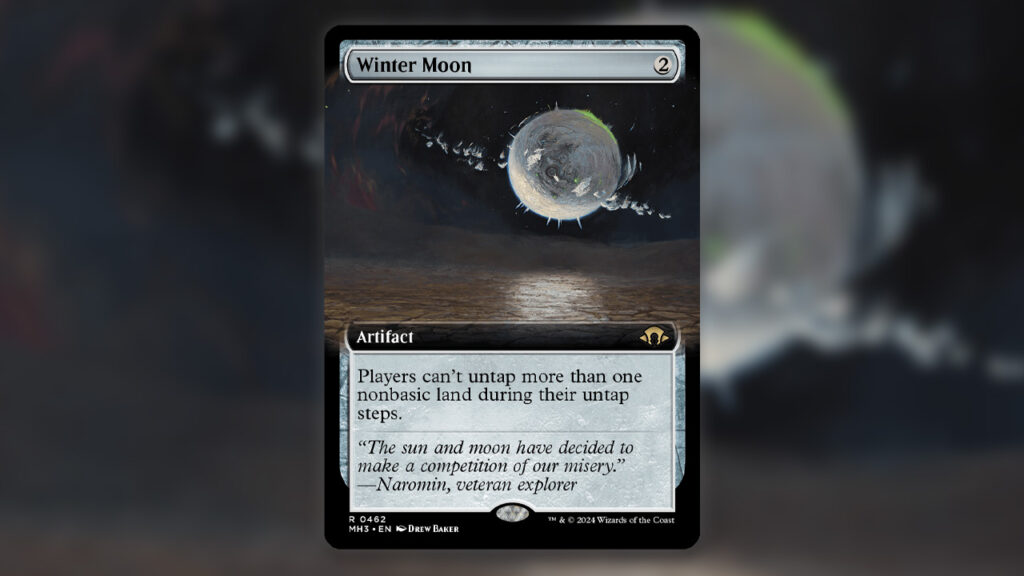 This is a rather disturbing effect to have brought to Modern. This is an obvious callback to one of the most hated cards in all of Commander: Winter Orb. While Winter Orb could easily cause some lock situations in Modern alongside Urza, Lord High Artificer, Winter Moon seems to play fair. Providing a hate piece for decks that are a little too greedy with their mana bases, Winter Moon will slow down nonbasic lands a fair bit. If you expect a lot of Leyline Binding decks in your future, Winter Moon will be a great tool for taking those decks off the map.