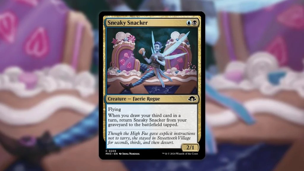 Sneaky Snacker has become a format staple. By resolving Moxite, you get to discard Sneaky Snacker, then bring it back in the same turn after drawing two extra cards. If Sneaky Snacker ever dies, bouncing and replaying Moxite makes it trivial to resurrect Sneaky Snacker on command.