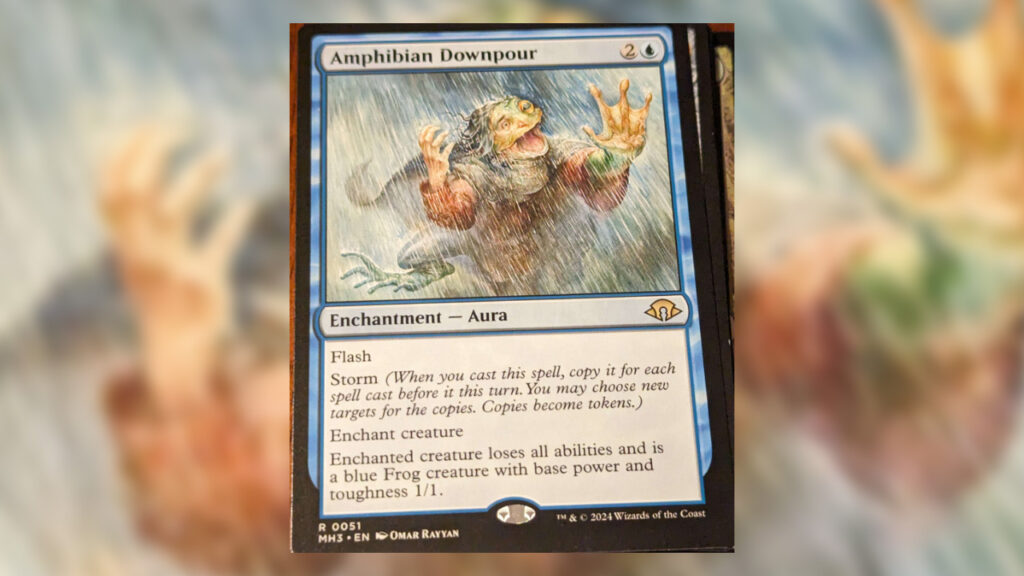 Storm is back, but its on a strange pseudo-removal enchantment this time. Amphibian Downpoar turns creatures into 1/1 Frogs, and has Storm to help it find more victims. Flash is a nice touch, allowing you to Storm off on your opponent’s turns. Overall, I think this is a really niche card that could see some play in the right decks.