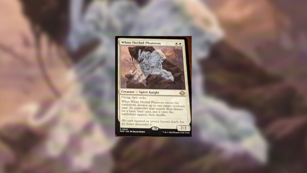 White Orchid Phantom is another obvious callback to the card Knight of the White Orchid. This is likely a step up from its historic counterpart, able to destroy a nonbasic land an opponent controls. They do get to search for a basic land, but many decks in the Modern format run rather greedy manabases at the moment. This card also gains Flying, which is a nice touch.