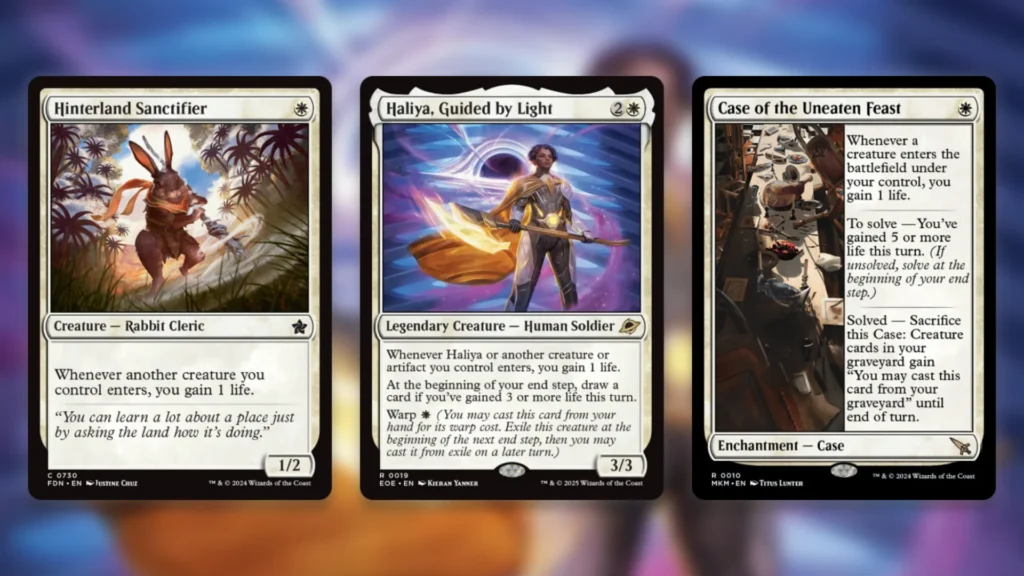 For the lifegain package, MChoq runs Hinterland Sanctifier, Case of the Uneaten Feast, Gloryheath Lynx, and Haliya, Guided by Light. Haliya is the latest addition to the deck, and probably the most important. It serves as a continuous lifegain engine that can also draw you cards, which is crucial. There aren’t many ways for white to gain card advantage in Standard, after all. As if that wasn’t enough, you can also Warp it in for bursts of lifegain when needed. It’s no surprise that this card is spiking in price right now.
