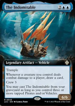 If that weren’t enough, you can cast it from your graveyard if you control at least three tapped Pirates and/or Vehicles. This works well if you happen to mill over The Indomitable with Admiral Brass’s enters-the-battlefield effect, or if an opponent has Artifact removal.