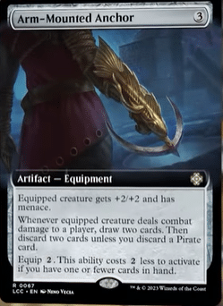 Speaking of Equipment, Arm-Mounted Anchor is a solid piece of Equipment that both makes one of your Pirates bigger and harder to block in combat, then lets you draw cards and pitch a Pirate from your hand into your graveyard. As we can see, there are plenty of new ways to reliably fuel Admiral Brass, Unsinkable within the Precon.