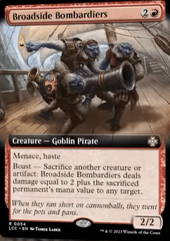 There are also ways to maximize token production within the Precon. Broadside Bombardiers, for example, is a Hasty Pirate that lets you sacrifice an Artifact or Creature to deal damage to something when it attacks. This is a great way to utilize excess Treasure and Map tokens. This Precon is definitely quite synergistic, which is great to see.