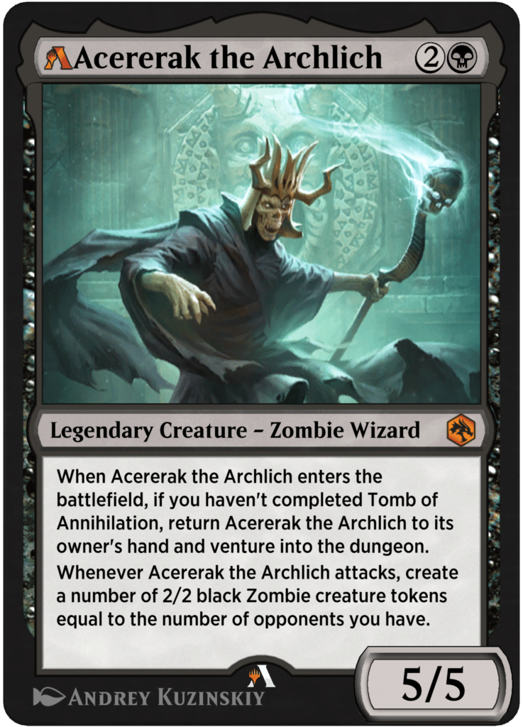 Acererak the Archlich had the option for an opponent to sacrifice a creature on it’s attack removed, allowing you to always make zombies. This really wasn’t used, as Acererak is mostly a combo piece in Historic.