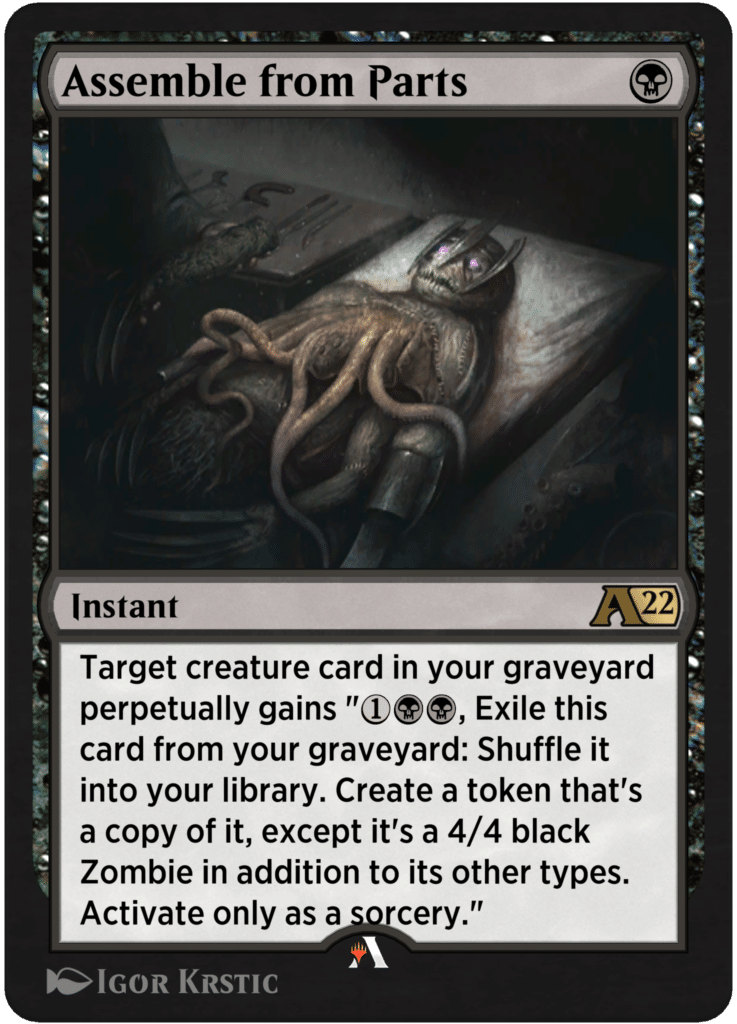 Assemble from Parts’s reanimation ability was changed from 3B to 1BB, making a turn 4 reanimation more of a reality, while also making you have to commit to black more to utilize this card. I think this could power up reanimator mostly in Historic.