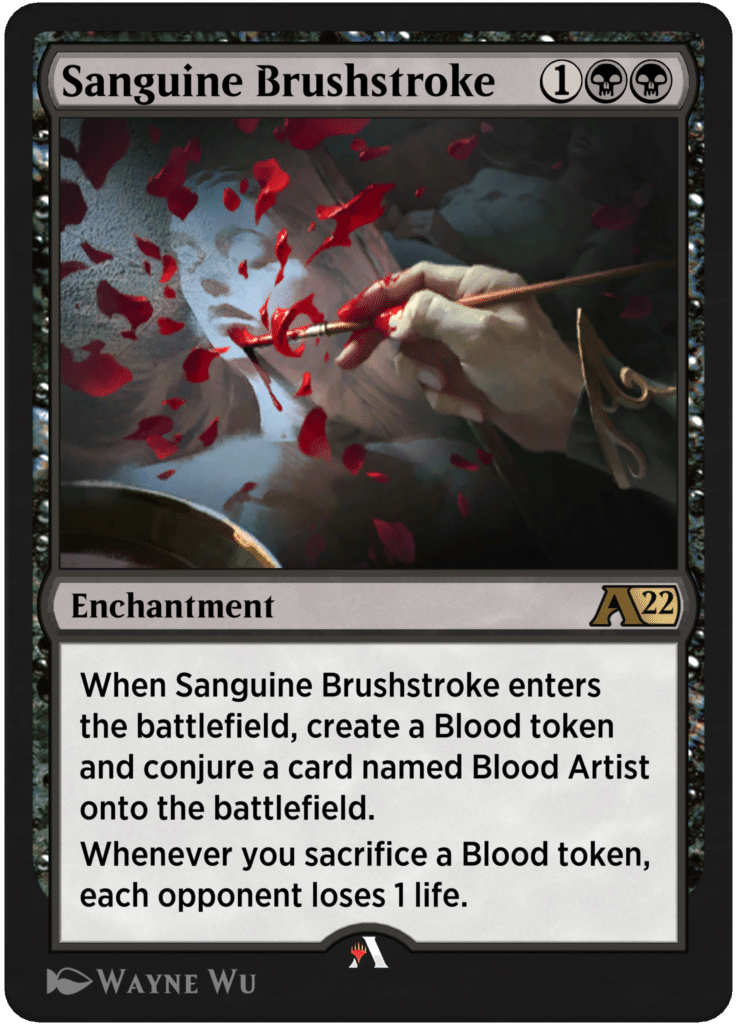 Sanguine Brushstroke got a nerf, removing the life gain from the Blood Token sacrifice ability. This is a good change as this curves the ability for decks using this to restabilize from behind. Often times Orzhov decks would combo this with The Meathook Massacre and the Blood Artist Brushtroke created to gain a TON of life. This curves that down a bit.