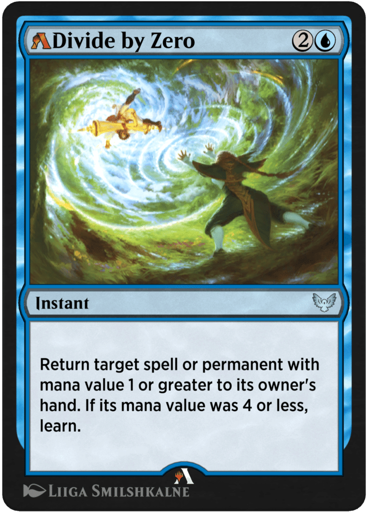 Divide by Zero’s Learn ability was changed to only activate if the permanent returned was mana value 4 or less. The learn portion of this card was definitely a big draw to use it, but this is still a very powerful card. I expect that it’s still going to see some play in Alchemy.