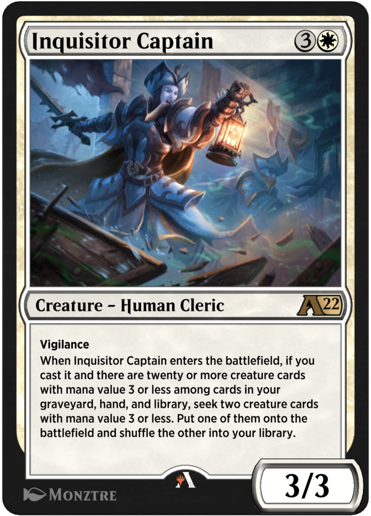 Inquisitor Captain got a little nerf, adding in “if you cast it and” to the enters the battlefield ability. This may seem like a non-factor, but this does come into play as Cleric decks are playing Pyre of Heroes to cheat this into play. This really doesn’t hit Historic, as the only deck playing this is the Heliod Combo deck, which casts this anyways. Good nerf, but the card is definitely still good and playable.