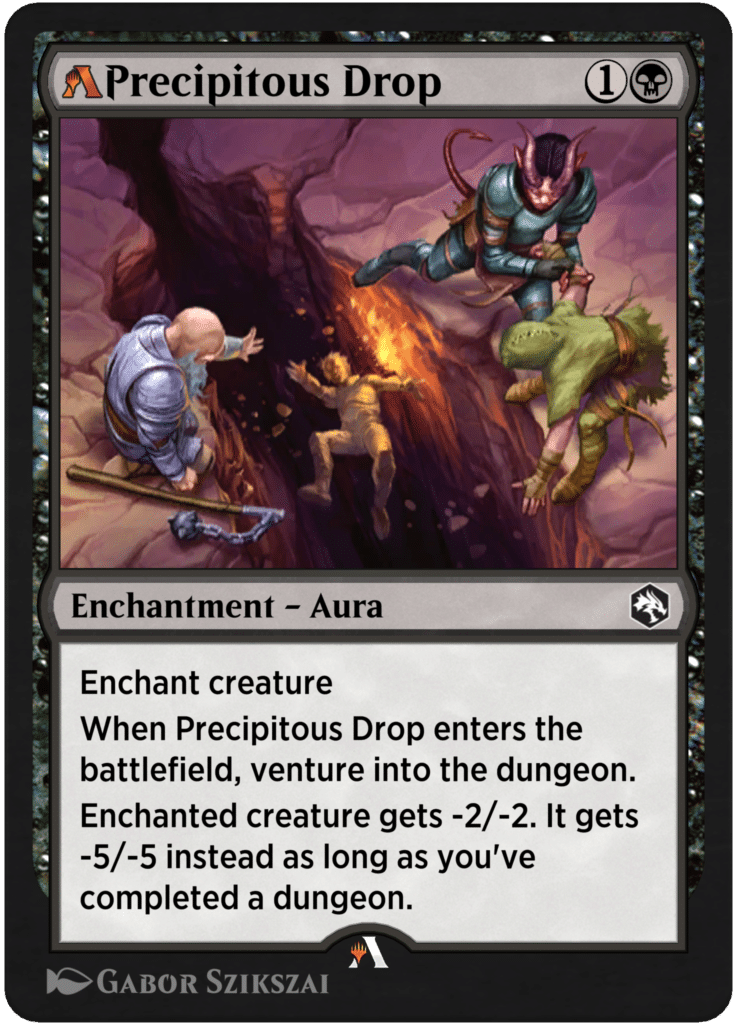 Precipitous Drop had its cost reduced to 1B from 2B. This card is competing really with Dead Weight, as more than likely you’re not going to be completing a dungeon in most decks. I do think that if that situation comes up, this is a great card.