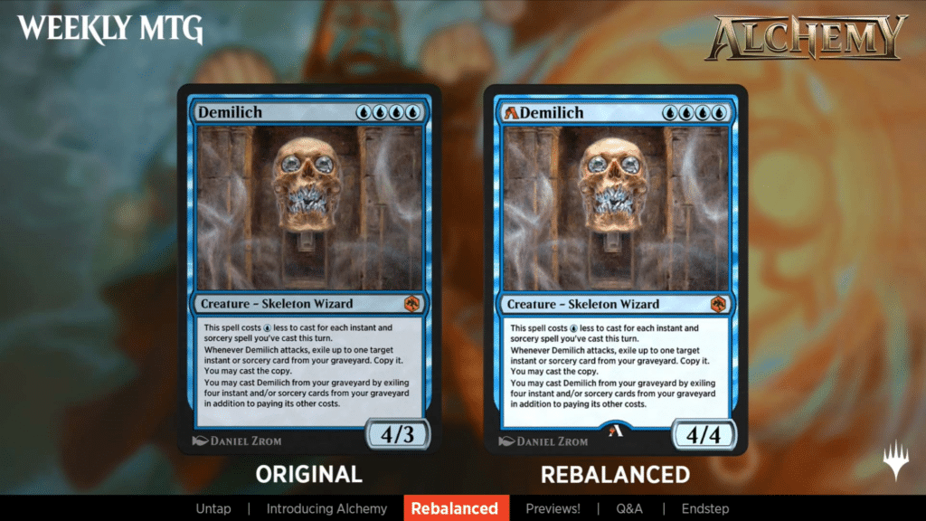 Alchemy isn’t going to replace any formats, but will be a new addition to the game. It will also have ranked and unranked modes, where the ranked versions will share the same rank as your existing constructed rank. For the standard cards that will be rebalanced, if you own the card for Standard, then you own the rebalanced version of the card as well.