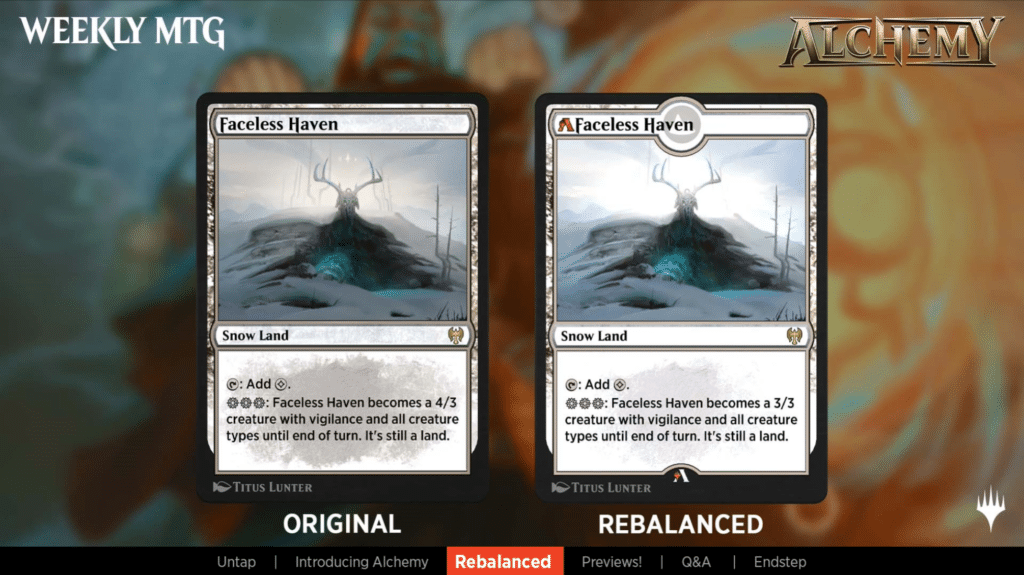 Faceless Haven was nerfed. Instead of being a 4/3, it’s now a 3/3.