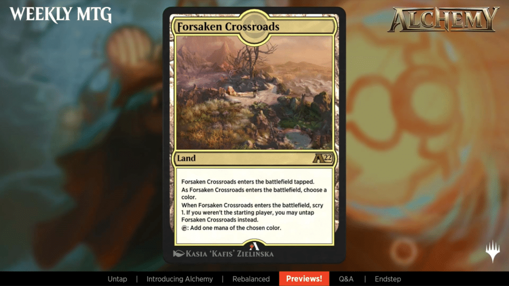 Forsaken Crossroads is the first card that cares about who is on the play and who is on the draw. If you’re on the draw, every copy of this can basically come in untapped.