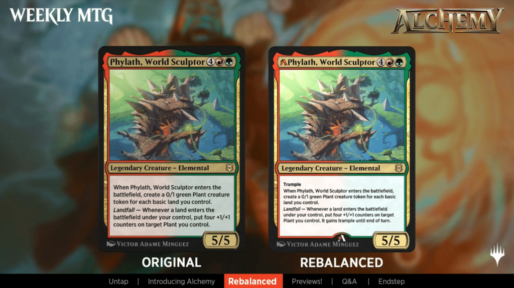 Phylath, World Sculptor got a buff. This now will give trample to the plant token in addition to the 4 +1/+1 counters.