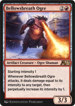 Many of the mechanics in this group are returning ones, such as Seek, Draft, and Conjure. But there is a new mechanic being introduced: Intensity. We’re not sure if this is the only new mechanic or not, but this is one is really cool.