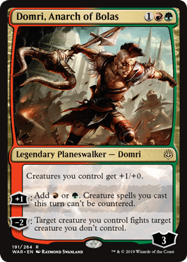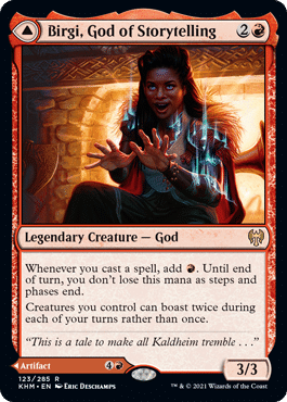 The main legends that we’re really looking to cast are the ones above. Gallia of the Endless Dance and Targ Nar, Demon-Fang Gnoll are free when we have a level 2 Bard Class. Domri, Anarch of Bolas gives us extra mana and protects our creatures from counter magic. Birgi, God of Storytelling also nets us 1 mana when we cast a spell, so our 3 mana legends become free as well. Radha, Heart of Keld is also a way for us to find mana from our library if we happen to be land light.