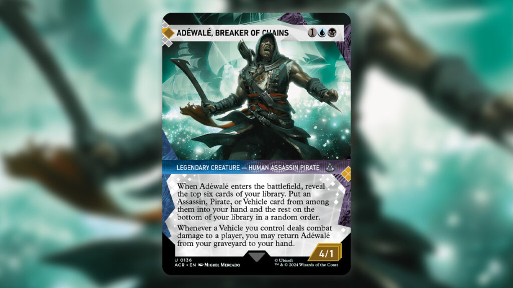 In this sense, Adewale, Breaker of Chains becomes the perfect Assassin for your deck. This card offers card advantage, is great at crewing Vehicles, and can recur itself when you successfully connect with a Vehicle.