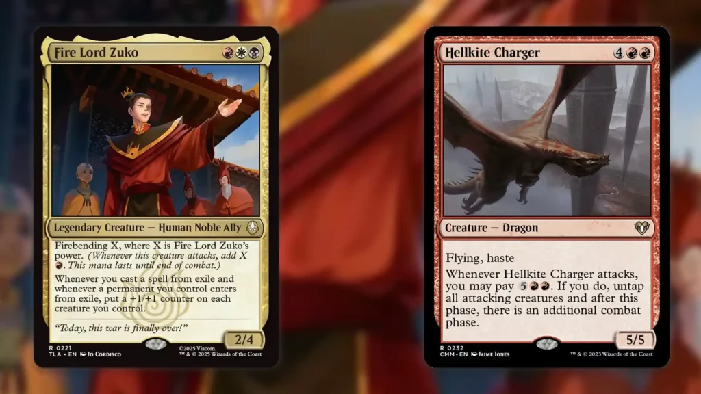 One of the most interesting mechanics in Avatar that provides a wealth of combo opportunities is Firebending. Many Firebending cards are capable of providing a huge burst of mana, and while the mana doesn’t spill over to your second main phase, mid-combat mana sinks like Hellkite Charger become scary threats alongside the new mechanic.
