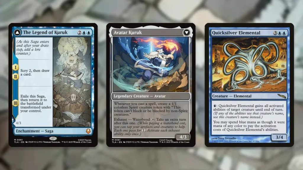 Normally Avatar’s Exhaust ability can only be activated one time during the course of the game, but you can get around this by having the Elemental gain the ability to take extra turns. This way, as long as you have enough mana and/or permanents in play to pay the Waterbend cost, you’re free to take all the turns in a row you want! Quicksilver Elemental is already a staple in Vivi Ornitier Commander shells, so adding The Legend of Kuruk for more combo opportunities feels like a slam dunk.