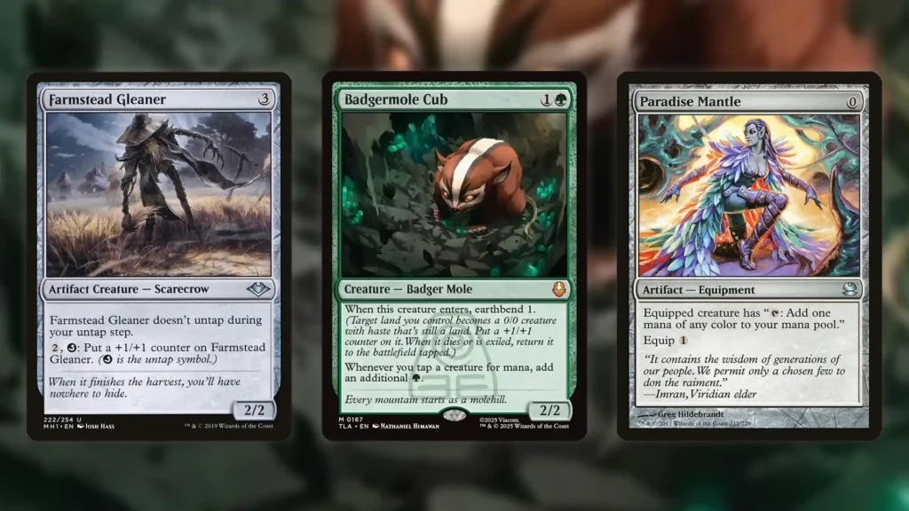 Notably, there are a variety of cards that fill a similar role as Paradise Mantle and can thus replace the equipment in these combo lines. Any card that allows Gleaner to tap for mana, including Cryptolith Rite and Enduring Vitality, will do the trick. Given how well these cards pair with Badgermole Cub even outside of combo draws, it wouldn’t be surprising to see this combo pop up in go-wide green EDH decks moving forward.
