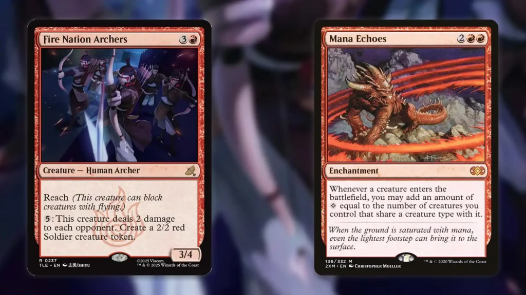 Moving on to an infinite damage combo that doesn’t require you to enter combat at all, we have the potent synergy between Fire Nation Archers and Mana Echoes. Archers’ activated ability isn’t that strong on its own, but it does make the creature the perfect win condition as long as you can generate a boatload of mana.
