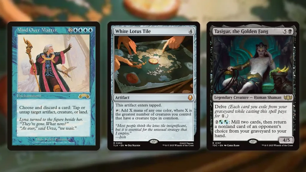 Finally, we’d be remiss if we didn’t discuss one of the primary enablers for infinite mana combos in White Lotus Tile. White Lotus Tile has insane upside, and once you’re able to reliably tap it for five or more mana, you’ll have no problem turning that into infinite mana in conjunction with Mind Over Matter and Tasigur, the Golden Fang.