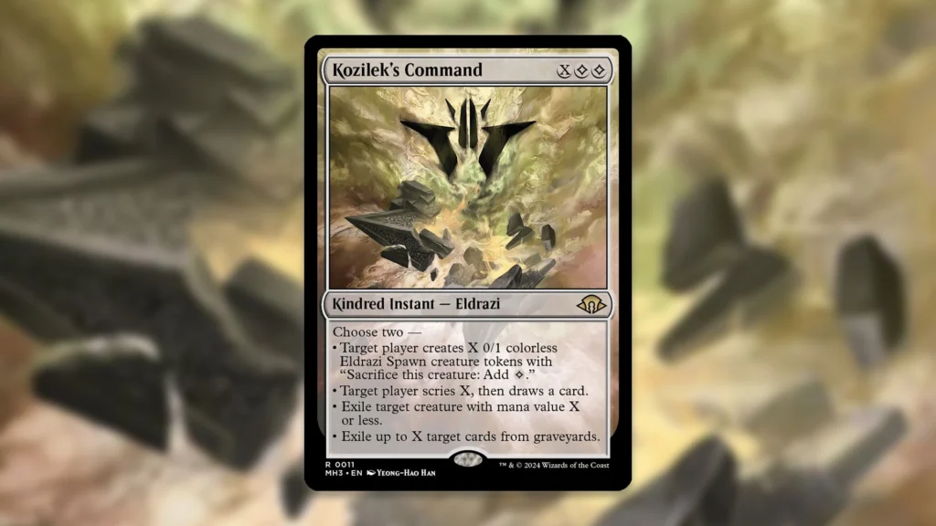 The honor of best Kindred spell goes to none other than Kozilek’s Command. The elite Modern Horizons 3 card has taken Modern by storm. No matter what Eldrazi variant you’re playing, Kozilek’s Command is going to be one of your strongest tools. The card even sees consistent Legacy play, something that no other card on this list is capable of.