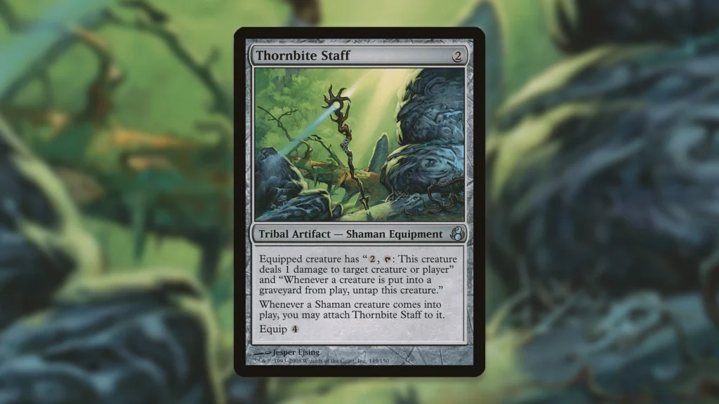 Unlike the previous cards on this list, Thornbite Staff is pretty much exclusively played in Commander. Despite featuring the Shaman type, Thornbite Staff is primarily featured as a combo piece, and you don’t need any Shamans in your deck to take advantage.