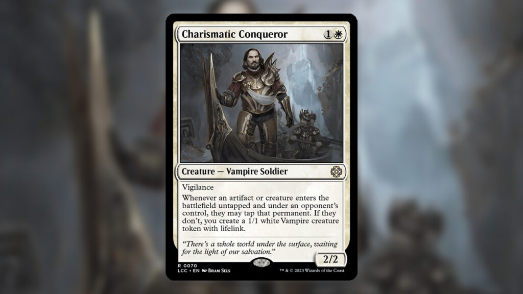 There are a lot of signs that suggest that Charismatic Conqueror will be quite powerful and adaptable in Commander. For two mana, you get a creature that triggers whenever an opponent casts an artifact. Thanks to fast mana being king in the format, an early Conqueror will be triggering a lot. The Conqueror also triggers whenever creatures enter the battlefield under their control.