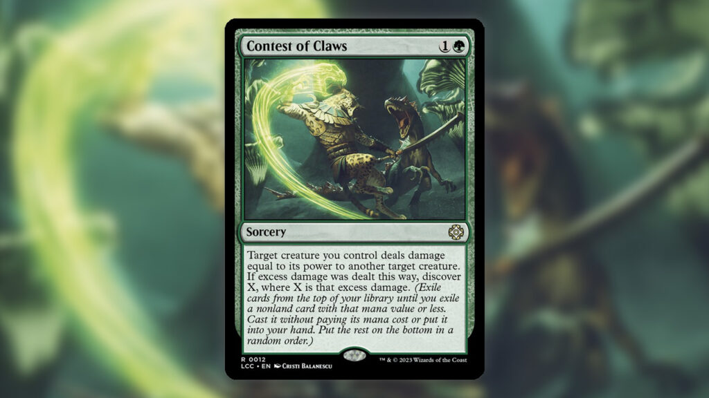I am very excited about Contest of Claws, so I may be rating it a bit higher than where it really is. the idea of killing a creature and Discovering one of your powerful mana rocks (Sol Ring for Discover one, for example) is a deal that I simply cannot ignore.