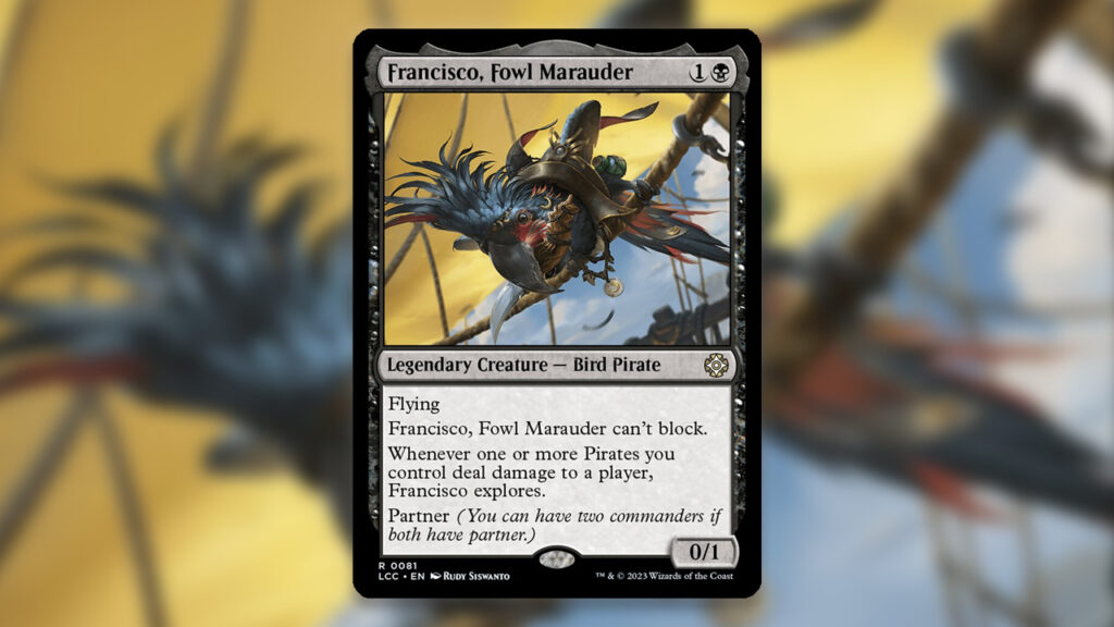 Partners, especially ones that can Partner with a wide range of different Commanders, are rather rare. Whenever one releases, it’s only right to shout it out. Despite all of the Pirate support releasing in The Lost Caverns of Ixalan, Francisco is the biggest piece of the puzzle.