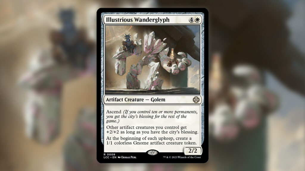 This makes Illustrious Wanderglyph easily complete its own Ascend requirement. If you casted your Wanderglyph with five sources of mana, you will have ten permanents ready to go on your following turn. This means the Wanderglyph technically represents 28 stats for five mana after one rotation of the table, as long as you have the City’s Blessing. The card will only continue to create more value the longer it goes unchecked.