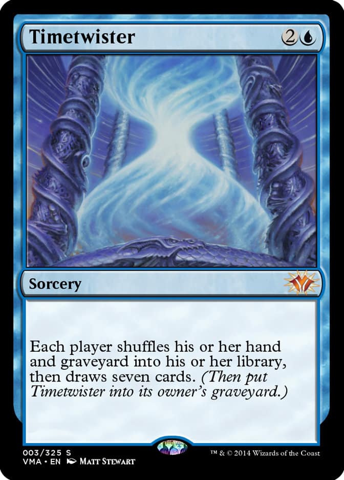 I’ve decided to group these cards together because they are all very similar. Wheel of Fortune forces all players to discard their hands and draw seven fresh cards. Timetwister does the same thing, except players shuffle their hand and graveyard into their library rather than simply discarding their hand. Windfall functions like Wheel of Fortune, except the number of cards each player draws is equal to the greatest number of cards discarded this way. Each of these cards are extremely strong.
