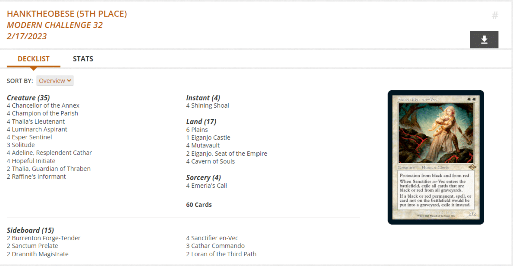Well, the results in the tournament do suggest that this is a playable deck. As mentioned earlier, other content creators have also tried this deck after it fell under their radar and have had some success with it. That said, after the archetype’s successful challenge win, the deck has managed to reappear in the top eight of some other challenges. They are all piloted by the deck’s creator HanktheObese. This archetype is, therefore, either not getting enough attention or is pretty difficult to pilot. That said, Hank has topped two of the Modern challenges this past weekend with his humans list and won a challenge the weekend before with it as well. Three results do suggest that the archetype has some real potential in the current Modern metagame. It’s just a shame that this potential is immediately turning into monetary value.