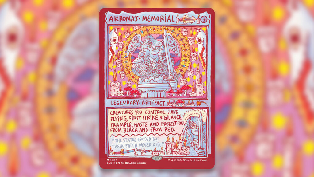 Currently, a foil Akroma’s Memorial demands about $34 for its cheapest variant according to TCGplayer market averages. This already recoups most of the approximately $47 price tag for the Burning Revelations Secret Lair.