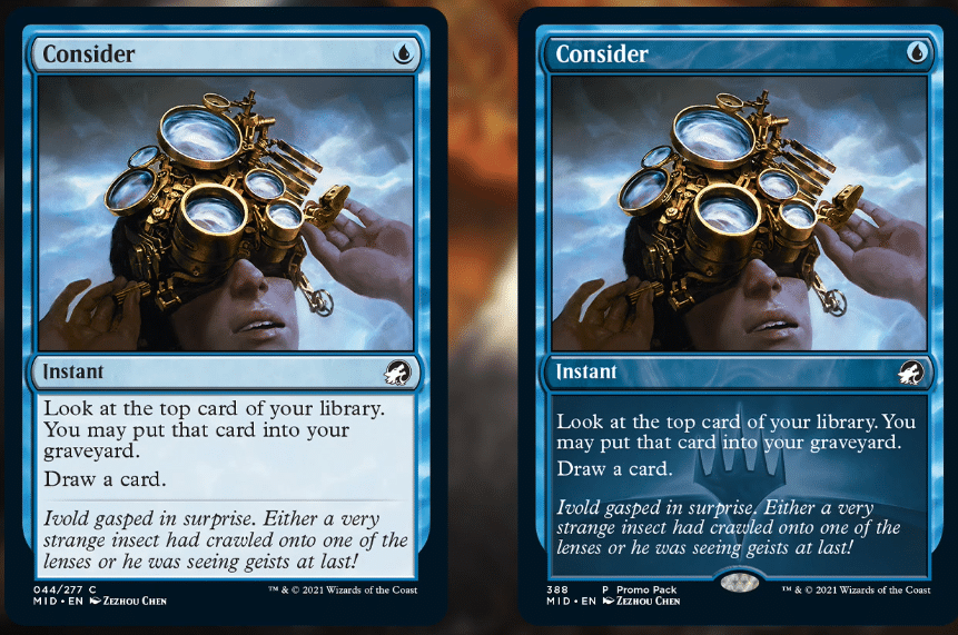 But there’s a big difference between Opt and Consider. Whereas Opt lets you put the top card of your library on top or bottom of your library, Consider gives you the option of keeping that card on top, if you need it, or putting it in your graveyard.