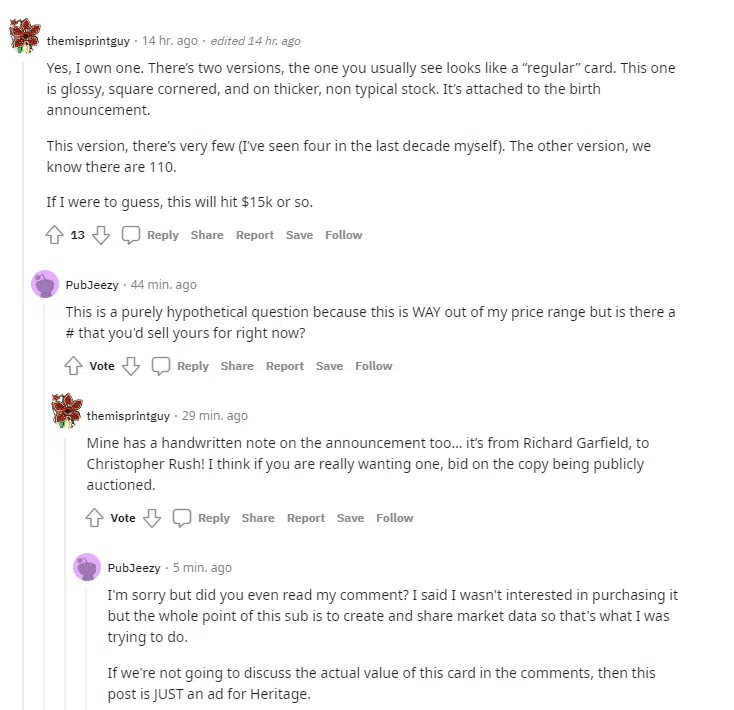 “There are, apparently, only nine of these in existence. Garfield wanted to propose to Lily while playing a game of MTG with her and cast the card within the game. Ironically, the story goes that Garfield could not draw the spell for three games in a row, with Lily asking him if he wanted to stop because he couldn’t win with the deck he was playing. He eventually legally casted the card in his fourth game, where his proposal was successful. Garfield did not want this card to be distributed, so it just about disappeared after the proposal itself.”