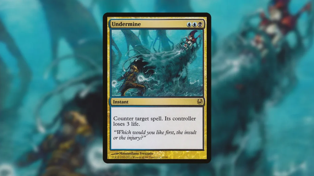 Undermine is a pretty simple spell. Countering a spell and losing three life is a reasonable effect for three mana, but it’s not incredible. Undermine is generally worse than a two-mana counterspell that has no conditions, with one exception. When the loss of life is particularly synergistic, Undermine can shine.
