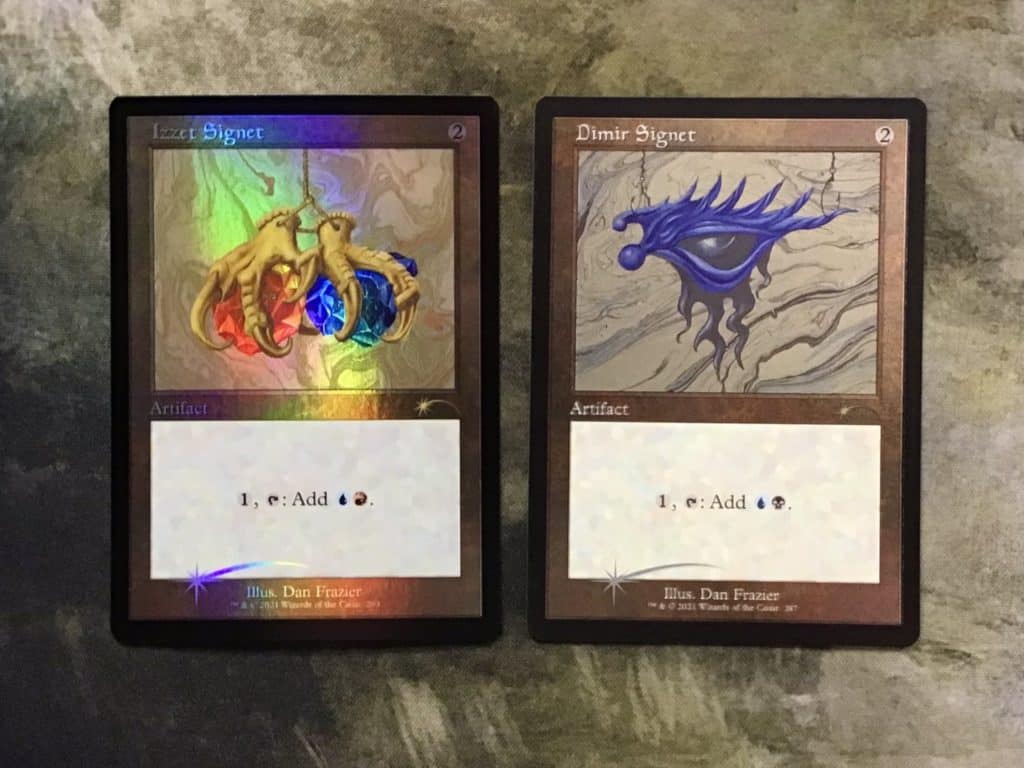 On release, the Dan Fraizer Drop in question will only include etched foils, whereas the ones received by content creators are completely in foil. As a result, these complete foil enemy colored Signets will be incredibly rare with roughly a dozen or so in existence. Despite the error from WotC, these will fetch a high price given the scarcity and demand from MTG collectors.