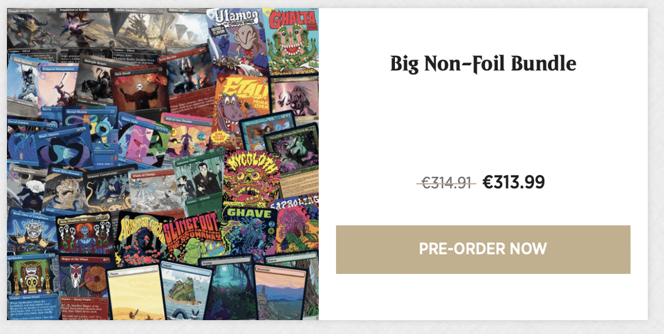 As pointed out in the picture above, the very slight discount offered by Wizards of the Coast puts some bundles below their free shipping mark for orders over 89 Euros. Without the dollar discount, this product would be eligible for free shipping. Notably, the same cannot be said for the US Secret Lairs, where this product is still $10 under the free shipping marker of $99.