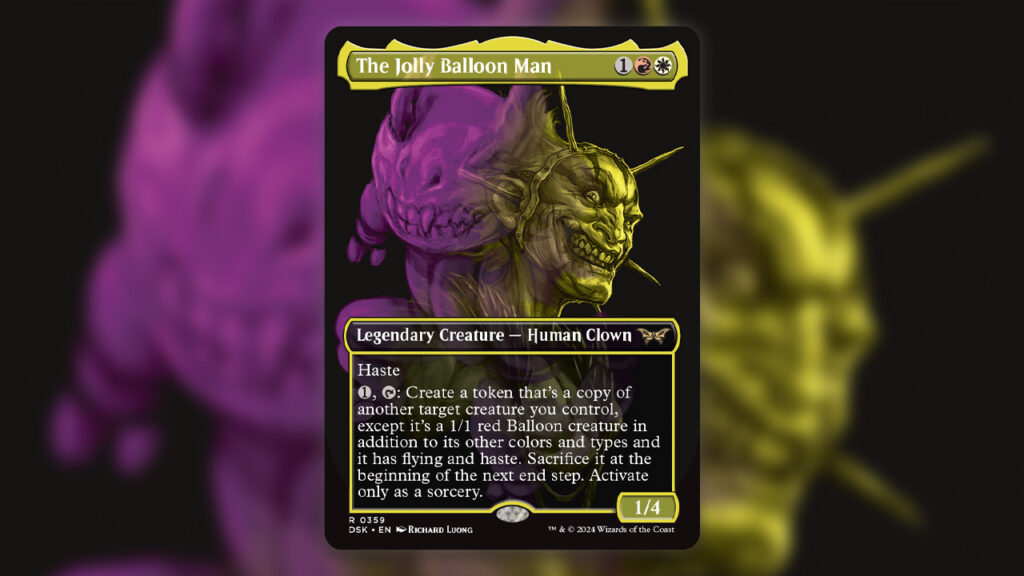 Duskmourn’s horiffic atmosphere can be felt with this particular spoiler. The Jolly Balloon Man is incredibly powerful. Just look at what the last mode of Fable of the Mirror-Breaker is capable of. The sorcery speed of this effect does limit a lot of what the card is capable of, but The Jolly Balloon Man certainly seems like a fun Commander, and could see some constructed play.