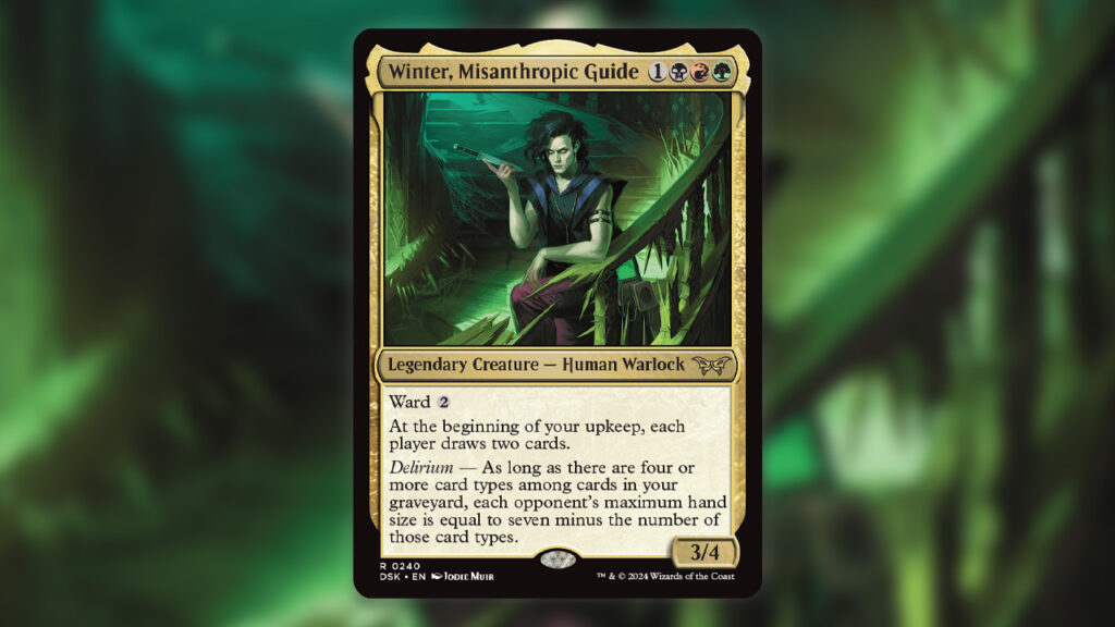 This card screams Commander, but may be too difficult to leverage in constructed. There’s certainly some synergy to be had with Sheoldred, the Apocalypse, but giving both players two extra cards is a dubious ask. The Delirium effect in Commander is certainly worthwhile, but may only have a larger effect in Commander formats. Ward 2 certainly helps Winter to survive opposing removal, but we’re not too impressed by this card outside of the Commander format.