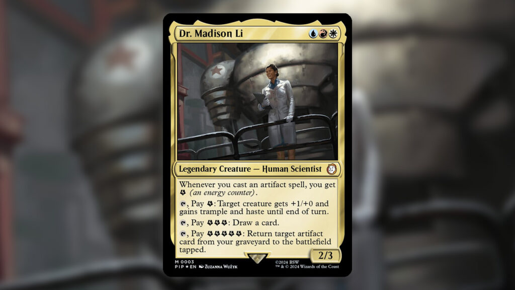 With over 30 artifacts and artifact creatures, Dr. Madison Li has plenty of fuel. A commander that is an automatic Haste enabler while adding Trample and an additional +1/+0 thrown in is decent. Add card draw and recursion to the total package for only three mana, and you’re looking at something very functional.